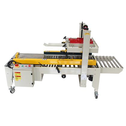 十字封箱機是一款組合型設(shè)備,主要是采用我們常用的半自動封箱機或折蓋封箱機完成一字封箱,然后通過側(cè)推機構(gòu)將紙箱進(jìn)行90°轉(zhuǎn)向,然后進(jìn)入半自動封箱機完成十字封箱包裝。